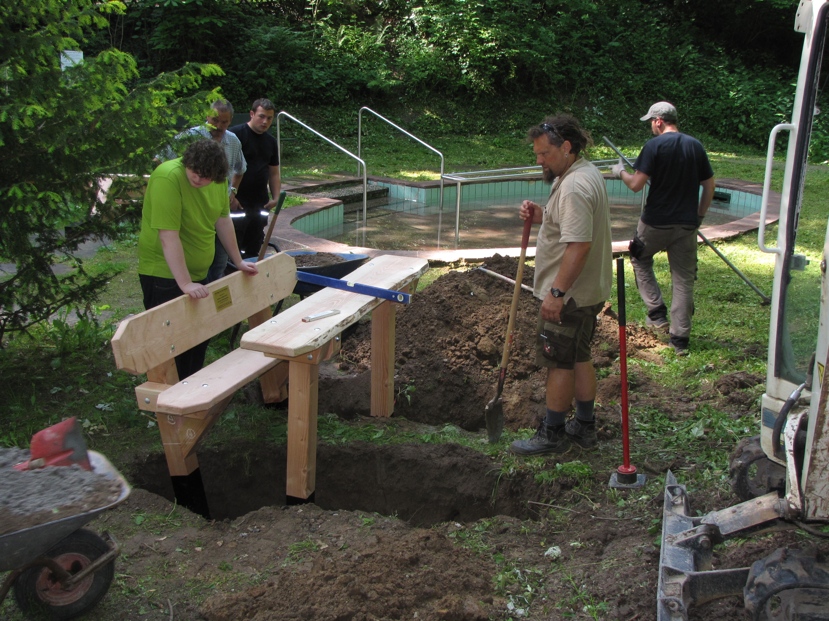 So haben fünf Generationen von Schülern der Hans-Freudenberg-Schule mit Unterstützung des Lions Club Weinheim neue Sitzgelegenheiten für die Kneipp-Anlage angefertigt und mit Hilfe der Mitarbeiter vom Bauhof aufgestellt. Sie wurden in den Jahren 2012, 2013, 2014, 2019 und 2023 im Rahmen freiwilliger Projektarbeit unter der fachkundigen Anleitung ihrer Lehrer hergestellt.